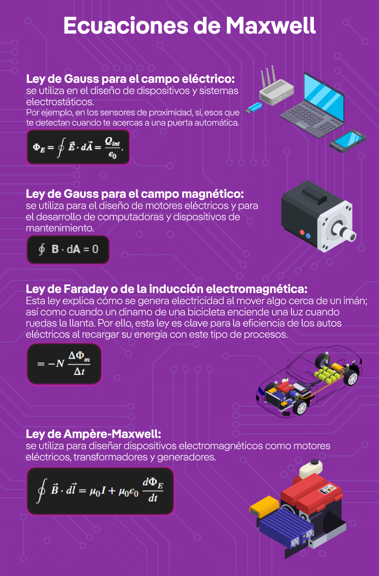 Aquí te compartimos las cuatro ecuaciones de Maxwell y algunos ejemplos de las tecnologías donde se aplican: